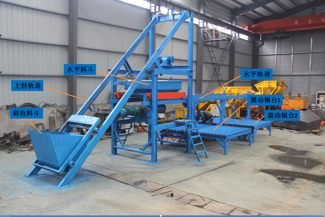 水泥預制塊生產線設備設備由混凝土罐車上料到斜拉料斗,混凝土上到頂部料斗后,混凝土通過雙螺旋下料系統,將混凝土裝入模具中,預制塊模具裝好混凝土后,通過振動力使得與設計尺寸一致。